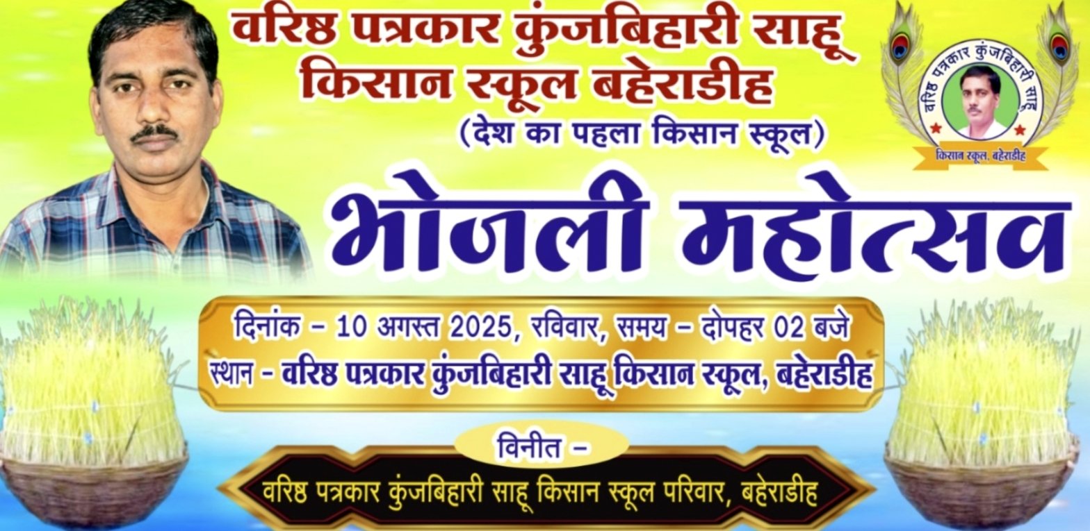 सुहाना लाइव न्यूज़ जांजगीर-चाम्पा–ग्राम बहेराडीह में कल 10 अगस्त को दोपहर 2 बजे’भोजली महोत्सव’का आयोजन किया जाएगा.भोजली महोत्सव का शुभारम्भ वरिष्ठ पत्रकार कुंजबिहारी साहू किसान स्कूल में जिला पंचायत की अध्यक्ष इंजी,सत्यलता आनंद मिरी,जिला पंचायत के सीईओ गोकुल रावटे और समाजसेवी डॉ.सुरेश कुमार देवांगन करेंगे,इस दौरान भोजली दाई की ग्राम बैगा के द्वारा विधि-विधान पूर्वक पूजा की जाएगी,यहां भोजली महोत्सव में पहला स्थान प्राप्त करने वाली महिला को बलौदा जनपद की पूर्व उपाध्यक्ष नम्रता राघवेंद्र नामदेव के द्वारा 1000 रूपये प्रदान किया जाएगा.इसी तरह द्वितीय पुरस्कार 700 रूपये सरपंच चंदा सरवन कश्यप,तृतीय पुरस्कार 500 रूपये डॉ.रामदयाल यादव के द्वारा दिया जाएगा,वहीं किसान स्कूल के संचालक दीनदयाल यादव, केंद्रीय रेशम बोर्ड वस्त्र मंत्रालय भारत सरकार के सलाहकार रामाधार देवांगन,पंच ललित कंवर,सोहन यादव, शिवराम कश्यप,राजकुमार यादव आदि के द्वारा सांत्वना पुरस्कार के रूप में 51,51 रूपये 7 महिलाओ को दिया जाएगा.पुरस्कार वितरण पश्चात गाजे-बाजे के साथ भोजली विसर्जन किया जाएगा.वरिष्ठ पत्रकार कुंजबिहारी साहू किसान स्कूल के संचालक दीनदयाल यादव ने लोगों से भोजली महोत्सव में शामिल होने की अपील की है।।