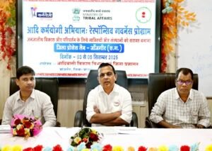 कलेक्टर श्री जन्मेजय महोबे ने आदि कर्मयोगी अभियान रेस्पॉन्सिव गवर्नेंस प्रशिक्षण कार्यक्रम का शुभारंभ करते हुए कहा कि सरकार की सभी योजनाओं का लाभ अंतिम व्यक्ति तक पहुँचना हमारी सर्वाेच्च प्राथमिकता है। जनजातीय समाज के उत्थान के लिए शासन-प्रशासन निरंतर प्रयासरत है और इन अभियानों के माध्यम से आमजन को सशक्त बनाने की दिशा में ठोस कदम उठाए जा रहे हैं। उन्होंने कहा कि विकसित भारत के साथ सेवा, समर्पण,संकल्प के साथ प्रत्येक कार्य किया जाना है।